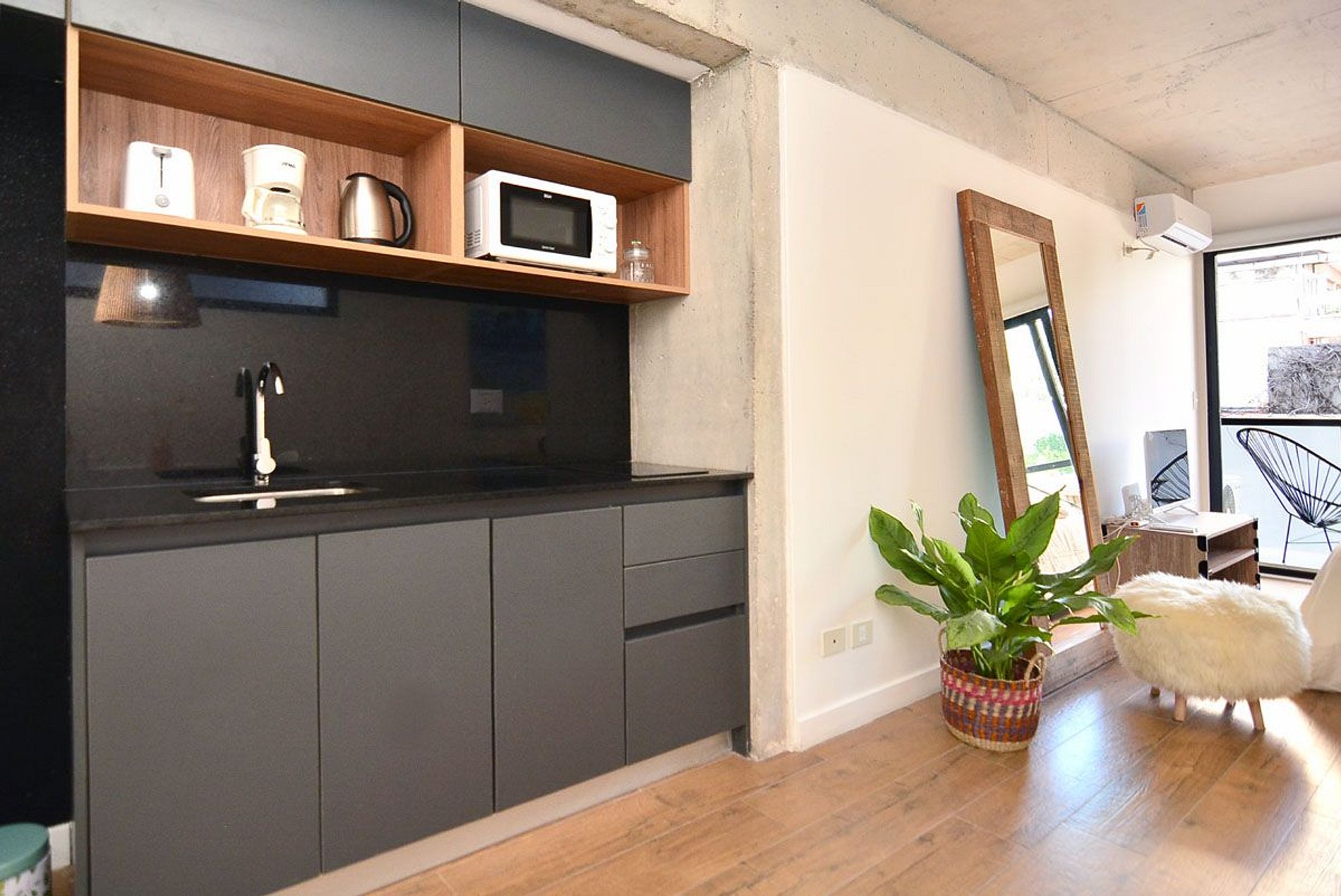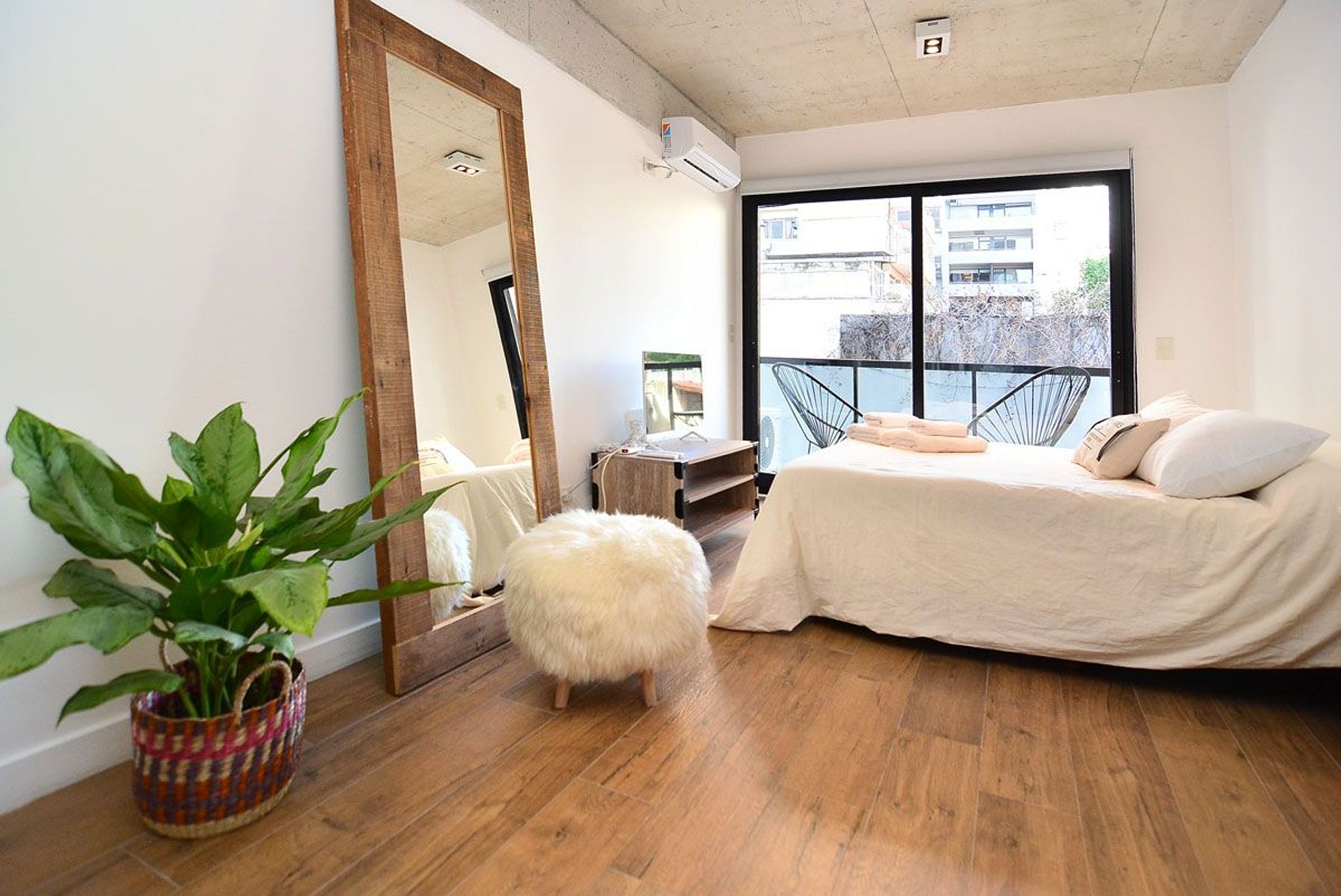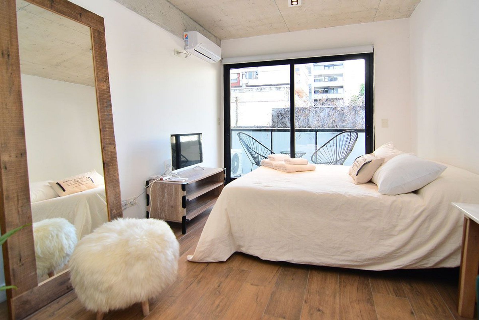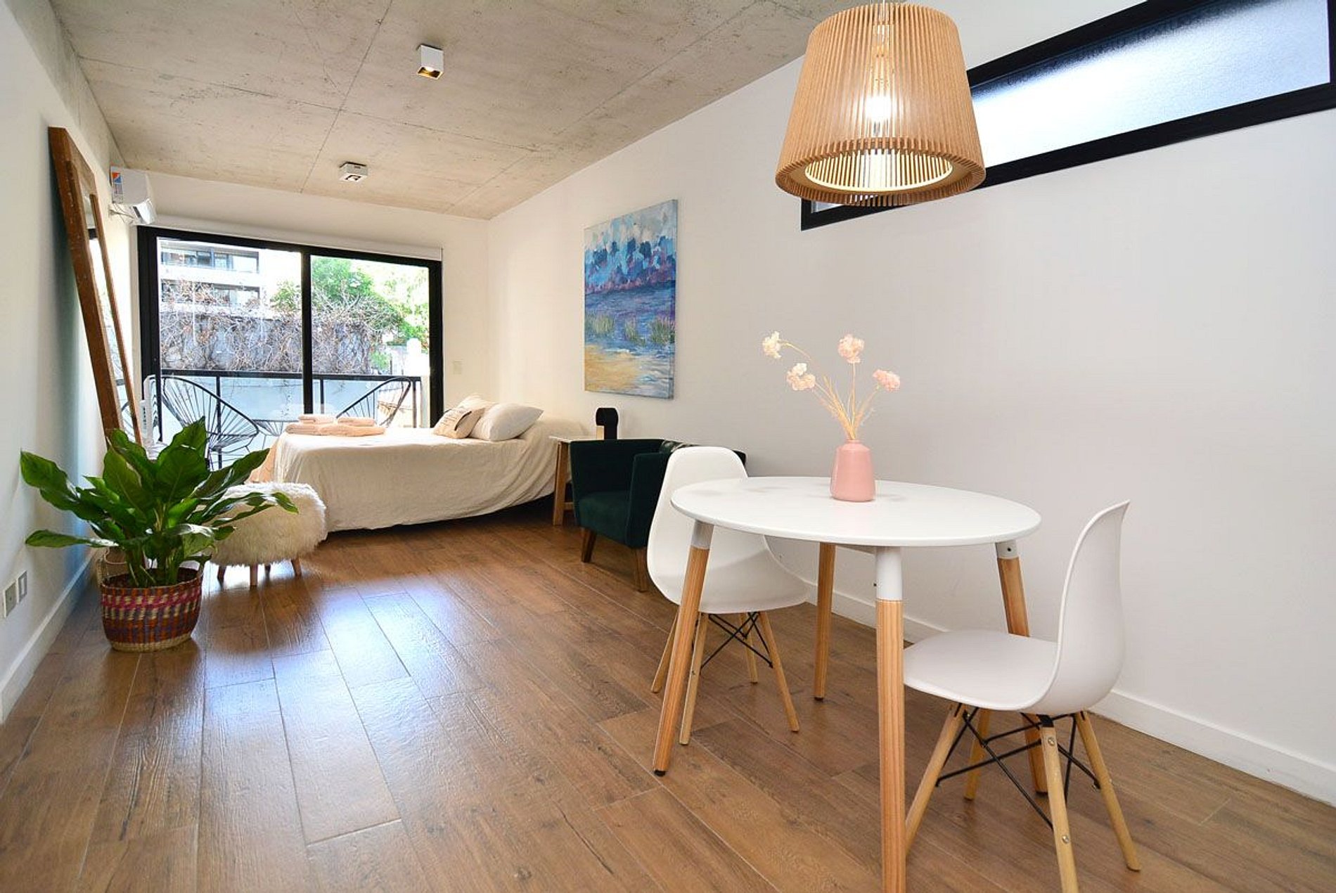 Beautiful, spacious, and comfortable studio apartment. Excellent location: close to everything and away from the noise. Very bright. Sleeps 2. Queen-size bed. Modern and functional decor. Wi-Fi, Smart TV, 2nd floor, balcony. Nearby shops. Very close to Santa Fé Avenue, transportation (Subway D, train, and buses), various food stores, delivery shops, bakeries, and cafes. Check-in from 3 p.m. Check-out by 10 a.m.