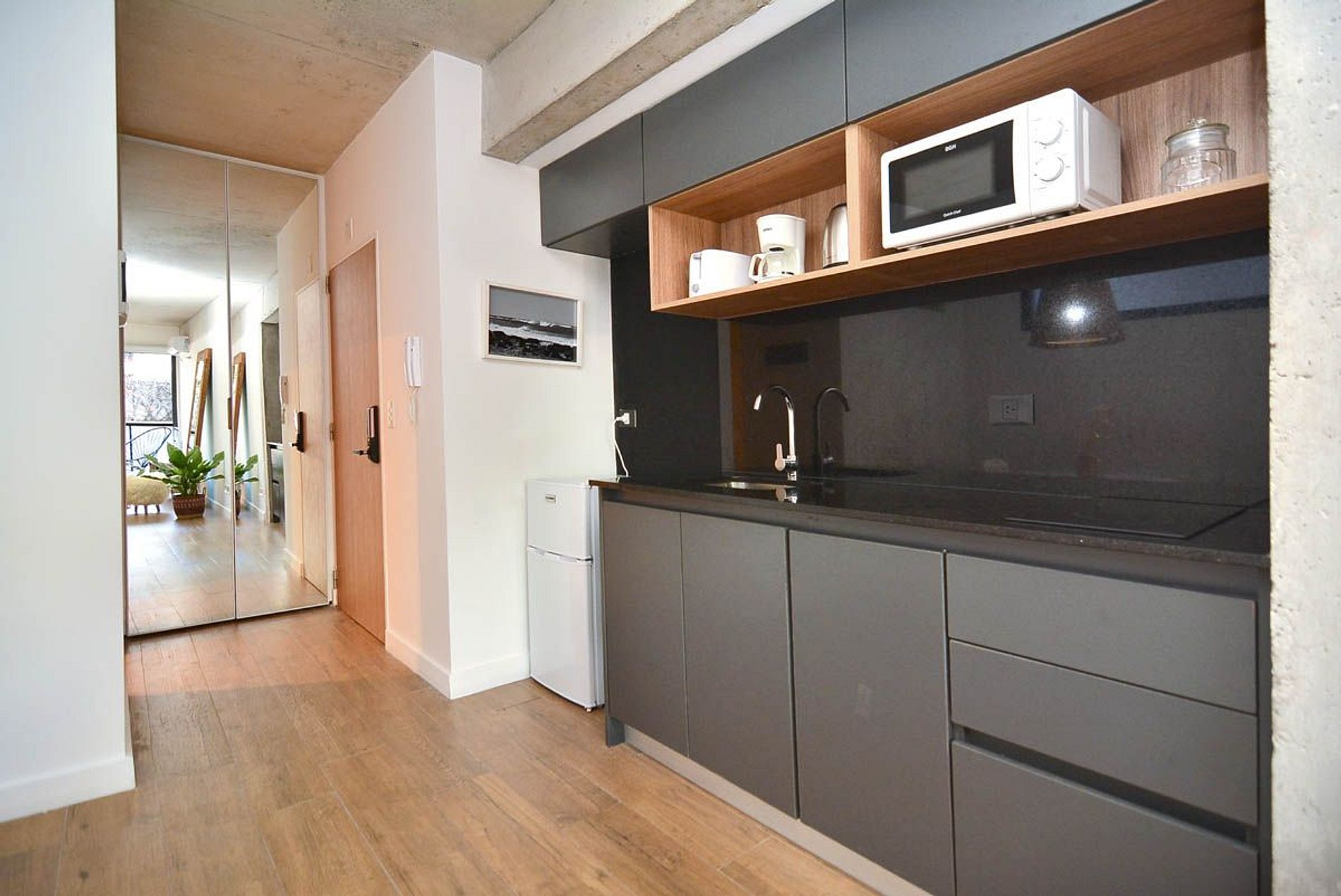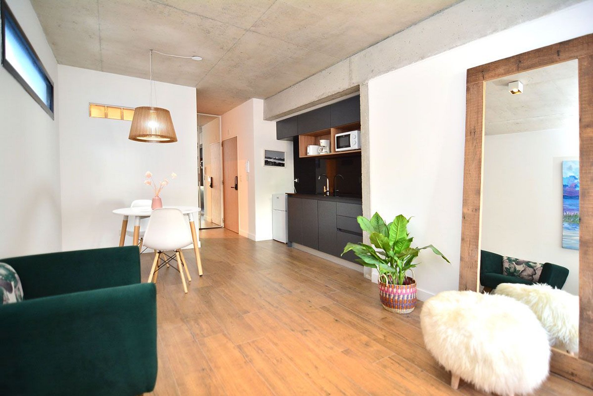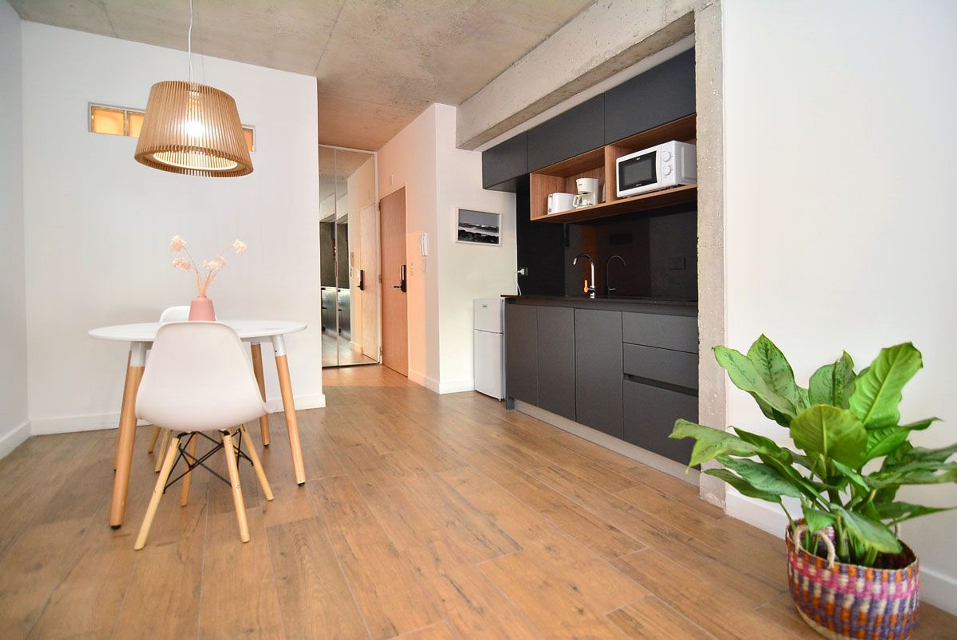 O espaço corresponde exatamente ao anunciado, apartamento muito bem decorado e arejado. O bairro é tranquilo, seguro e próximo ao metrô. Valeria foi muito gentil e nos ajudou prontamente. Há um local próximo para deixar as malas até o horário do voo, basta pedir as orientações previamente para facilitar a localização e acesso.