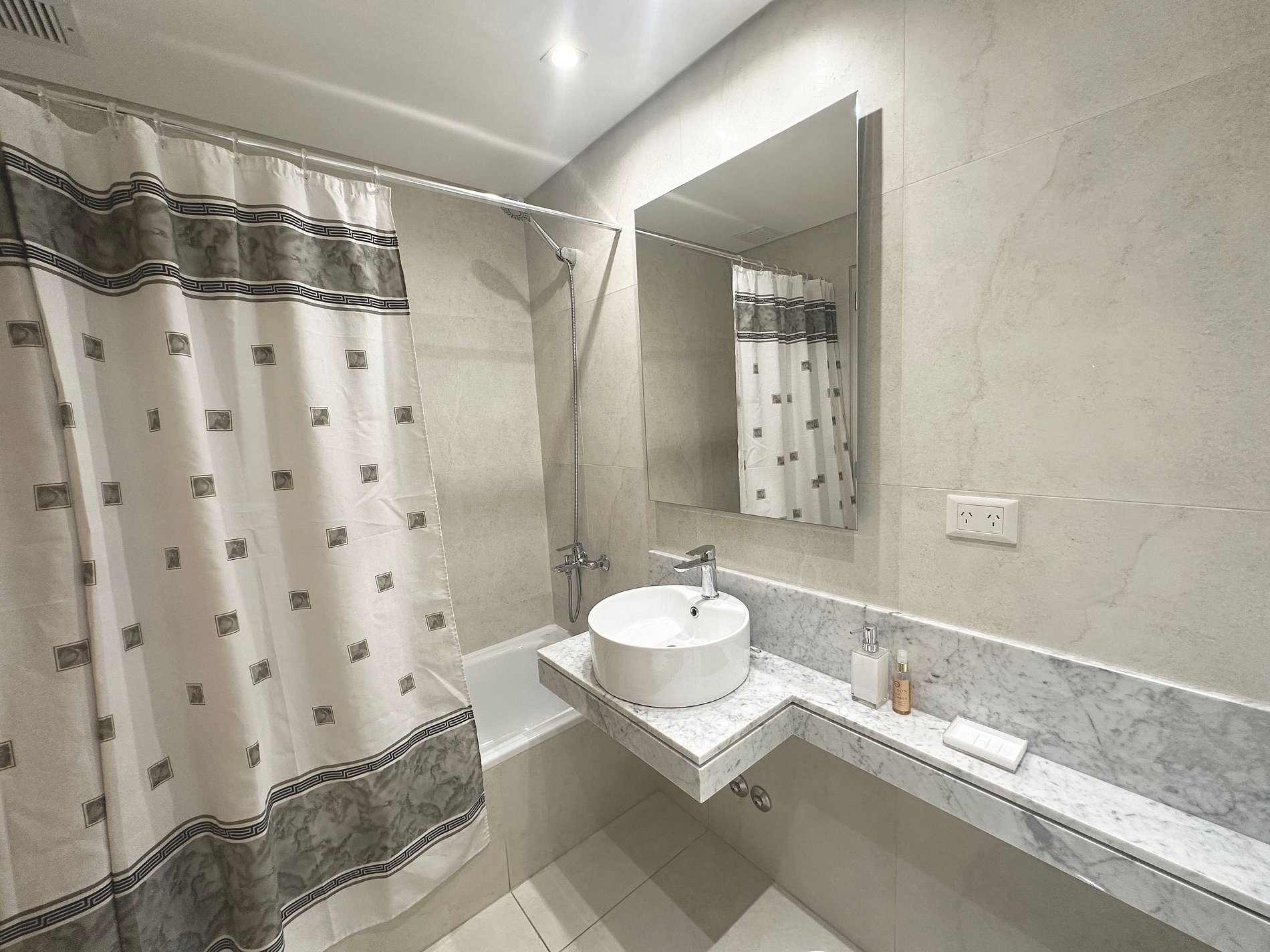 El baño es cómodo y moderno, cuenta con ducha tipo lluvia y bañera con agua caliente central. Dispone de aire acondicionado frío/calor, conexión Wi-Fi y Smart TV. La mesa de comedor hacen que 4 personas puedan pasar una estadía súper cómoda.