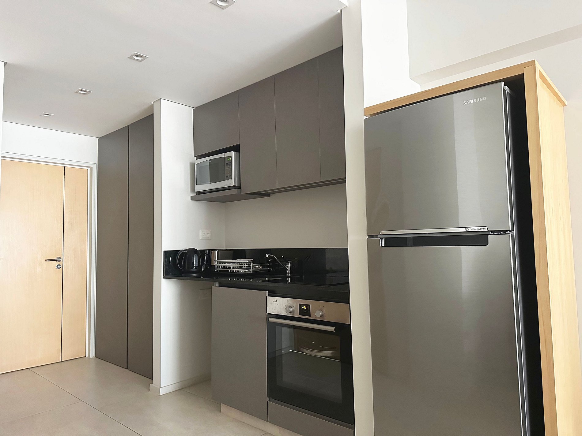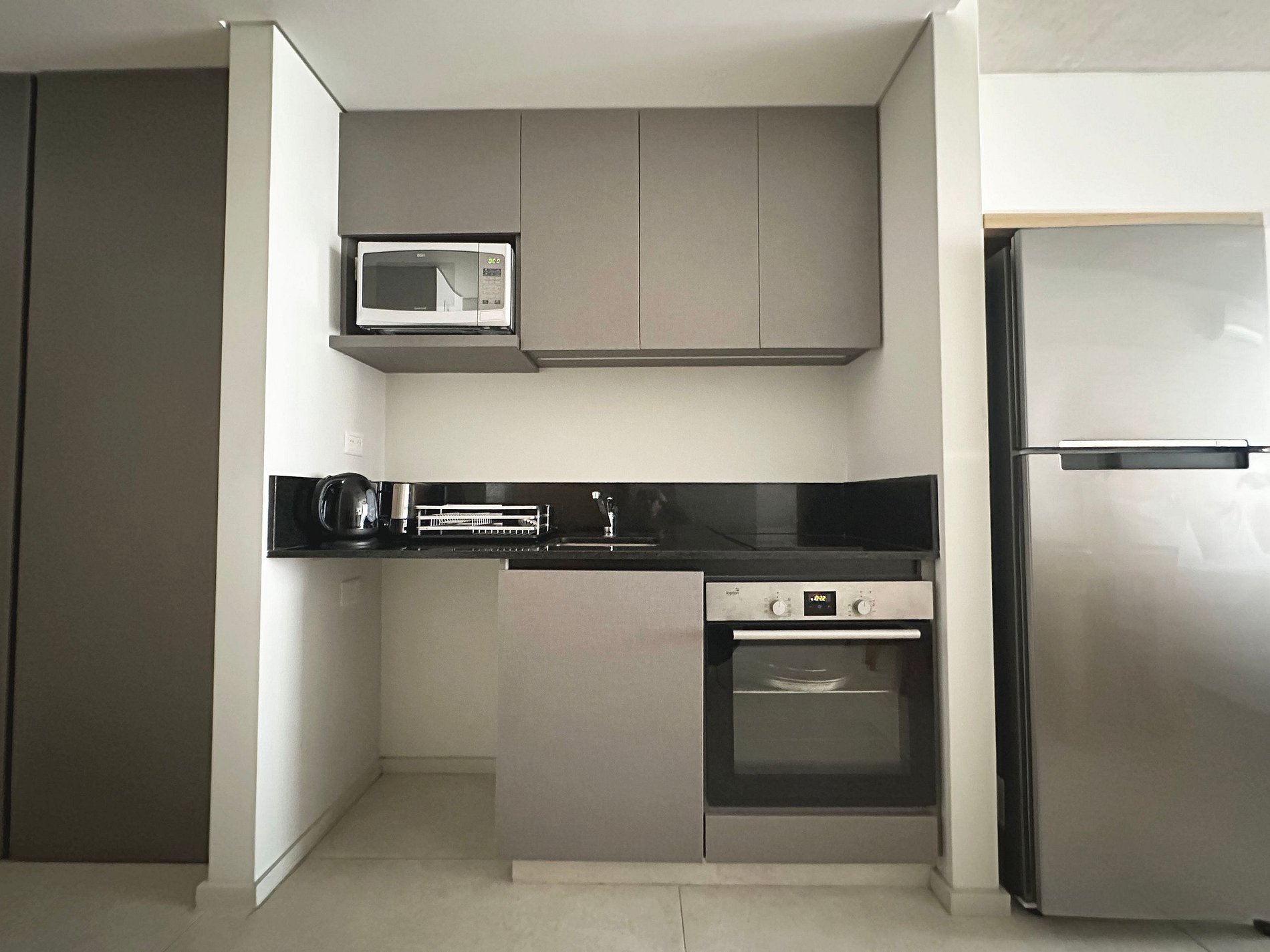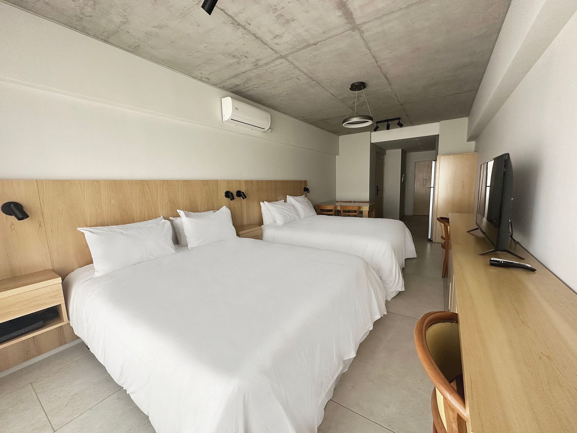 Este espacio combina diseño contemporáneo con funcionalidad, ofreciendo un ambiente luminoso y acogedor. Cuenta con un área equipada con dos camas matrimoniales y un gran escritorio. La cocina integrada está equipada, incluyendo heladera, horno eléctrico, microondas y vajilla completa.
